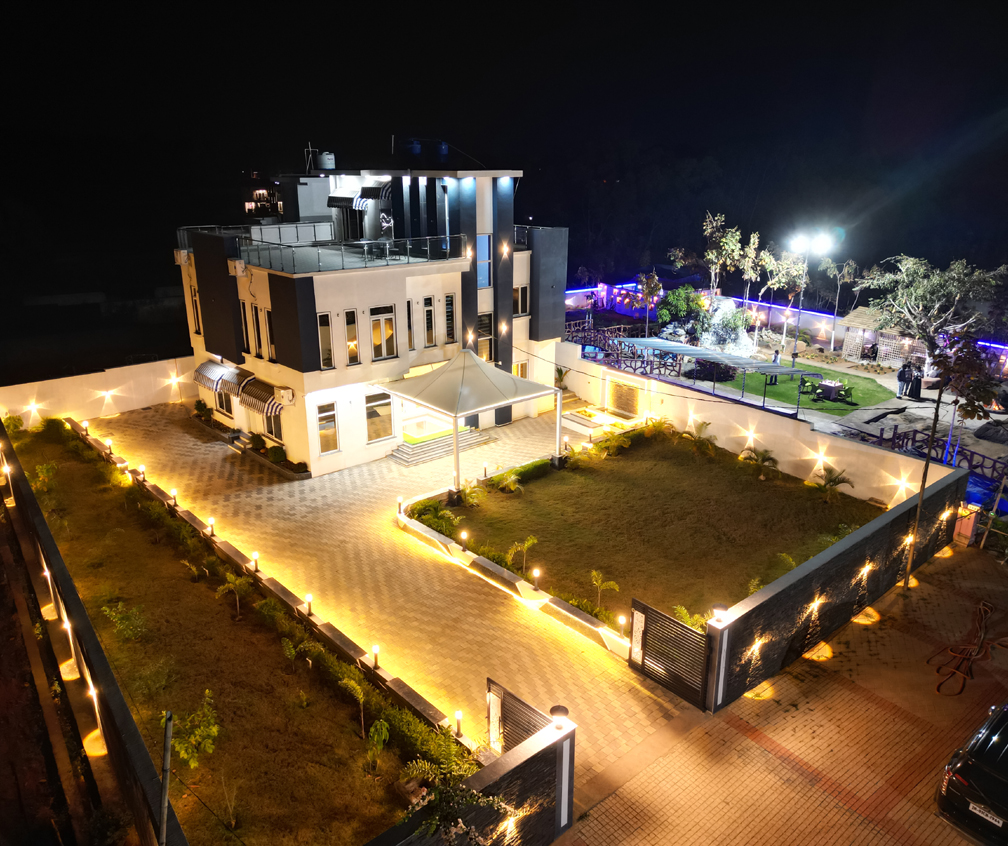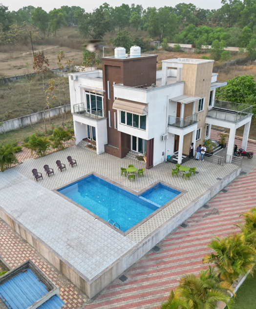 Other:-1 Mini Bar,1 Drawing Room,1Dinning Area, 1living Area, Open terrace, 2Powder Room ,1 Private Kitchen, Swimming pool, Lawn Area,Garden, Parking Area,Fountaina,Bonefire Area with 24×7 light and Security